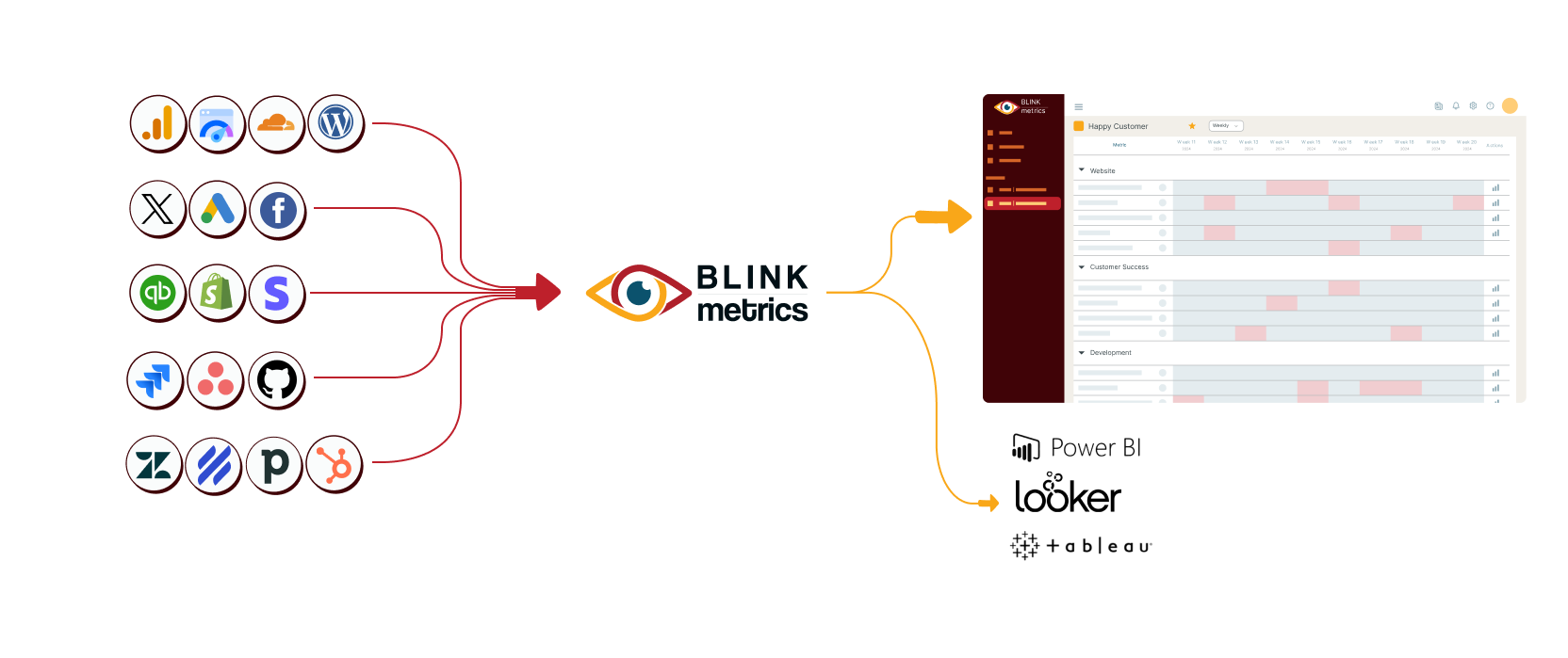 Out of the box, BlinkMetrics has everything you need to keep your whole company on the same page. Decide which KPIs to track during onboarding, then sit back and relax as BlinkMetrics automatically pulls that data and gives you a realtime look into your business.