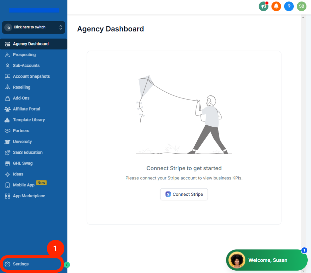 Login to the GoHighLevel Agency account to copy the API Key: