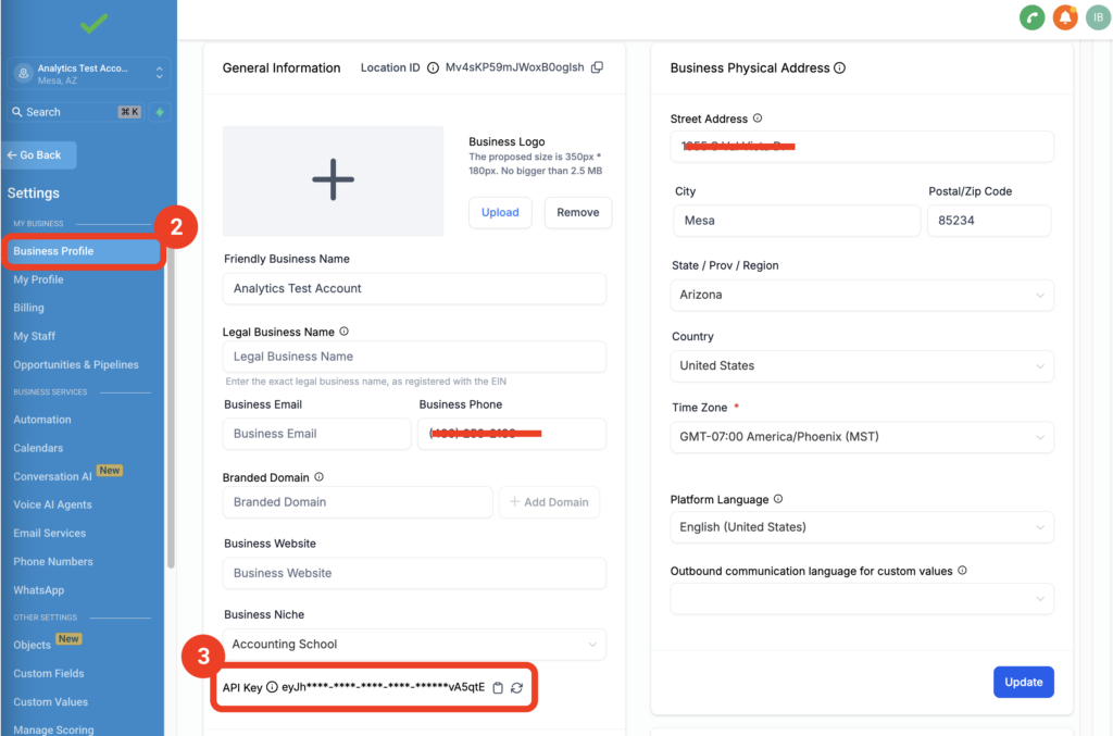 3. Collect GoHighLevel API Key
