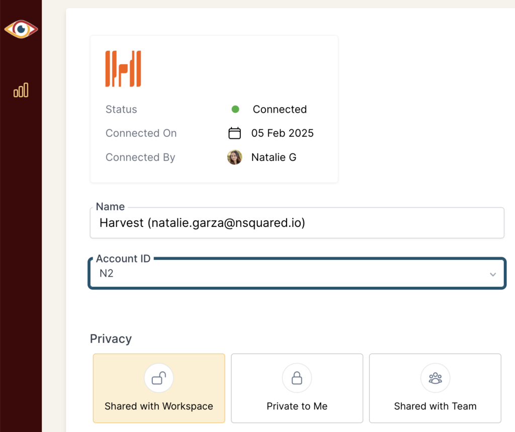 - Account ID: Select the Harvest Account that you’d like to associate with this Connection.